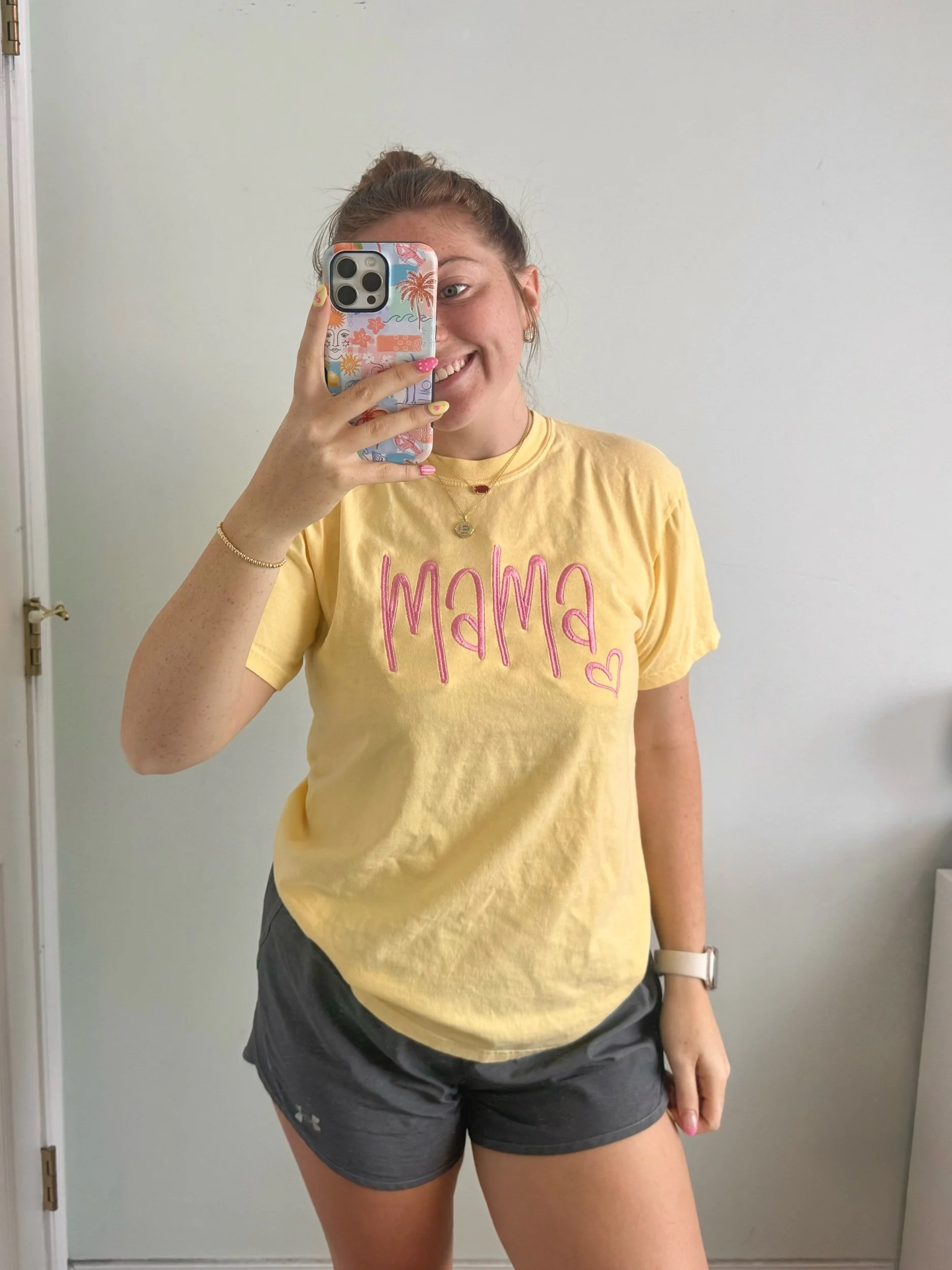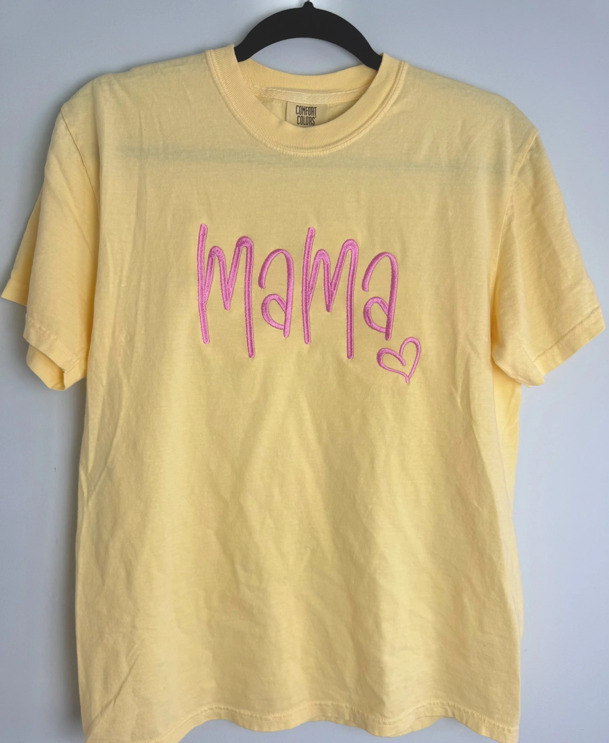 Shop › Mama Embroidered Tee Image 1 of 5 Image 2 of 5 Image 3 of 5 Image 4 of 5 Image 5 of 5 Mama Embroidered Tee $26.00 Comfort Colors brand t-shirt Estimated TAT: 4-12 business days Get notified by email when this product is in stock. Add To Cart Added! Comfort Colors brand t-shirt Estimated TAT: 4-12 business days Reviews Reviewer Name Review Date Star Rating Description Posted on Etsy Product Show More