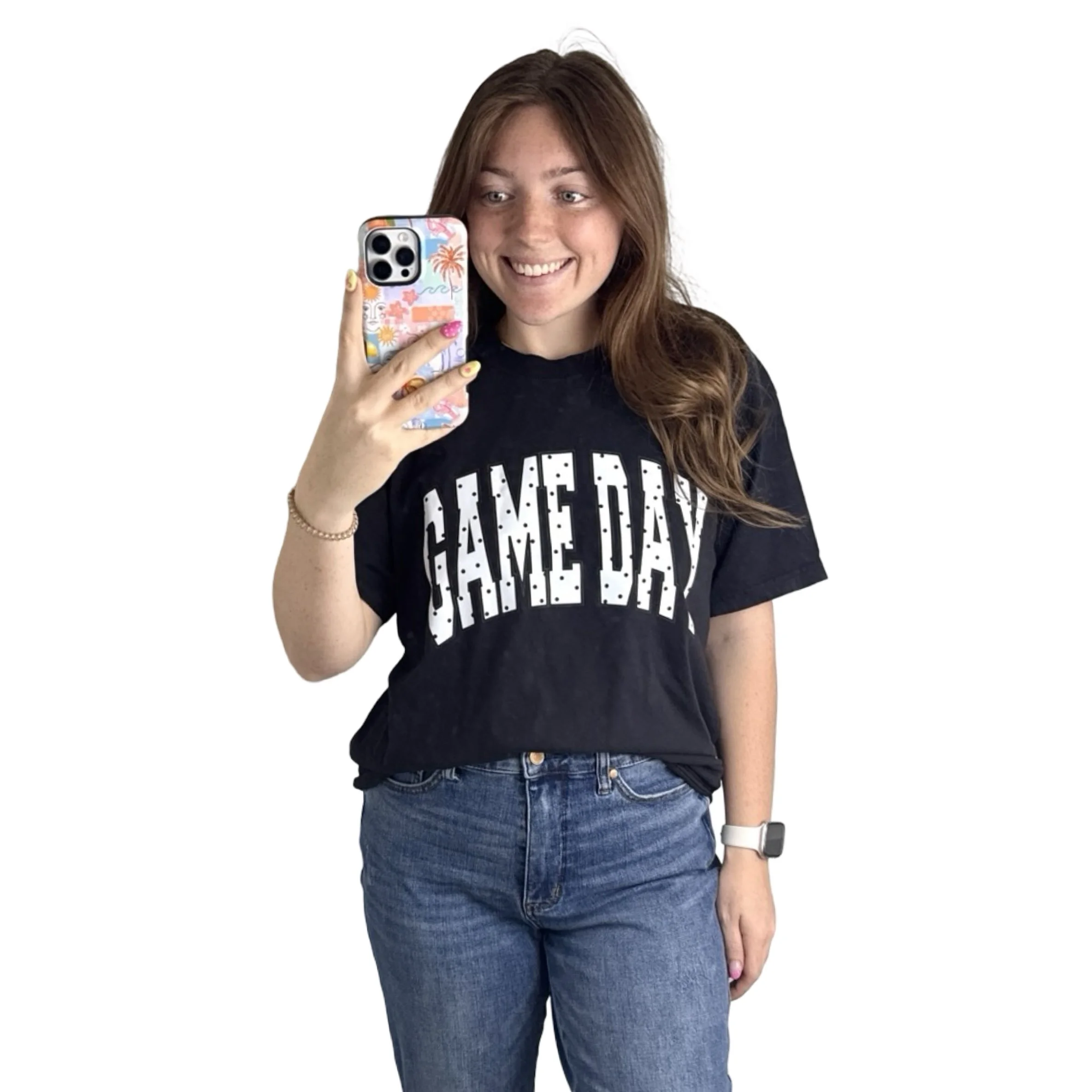 Shop › Game Day Polka Dot Tee Image 1 of 3 Image 2 of 3 Image 3 of 3 Game Day Polka Dot Tee $24.00 Comfort Colors brand teeEstimated TAT: 4-12 business days Get notified by email when this product is in stock. Add To Cart Added! Comfort Colors brand teeEstimated TAT: 4-12 business days Reviews Reviewer Name Review Date Star Rating Description Posted on Etsy Product Show More
